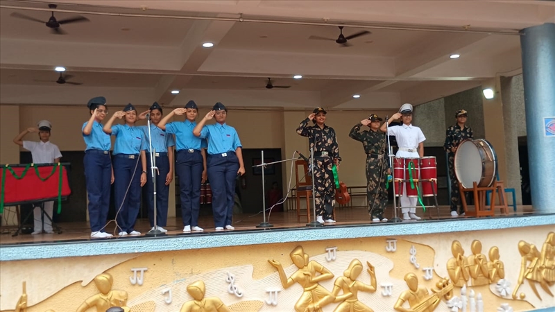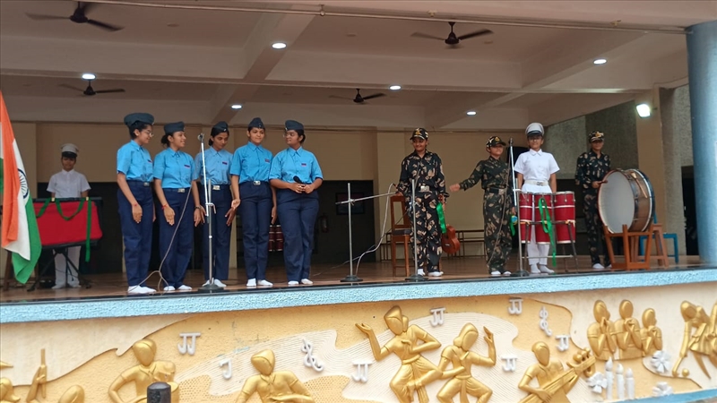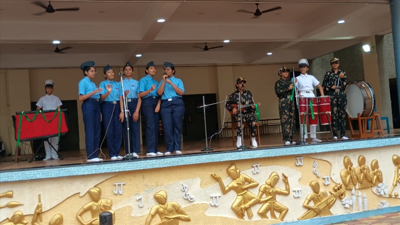 Our school resonated with the spirit of patriotism as students from all houses participated in a Patriotic Song Competition. Dressed in vibrant costumes, they sang heart-touching songs that celebrated India’s unity and pride. Each performance was a beautiful blend of melody, harmony, and emotion, leaving the audience inspired and the judges impressed. It was a true celebration of our nation’s spirit!